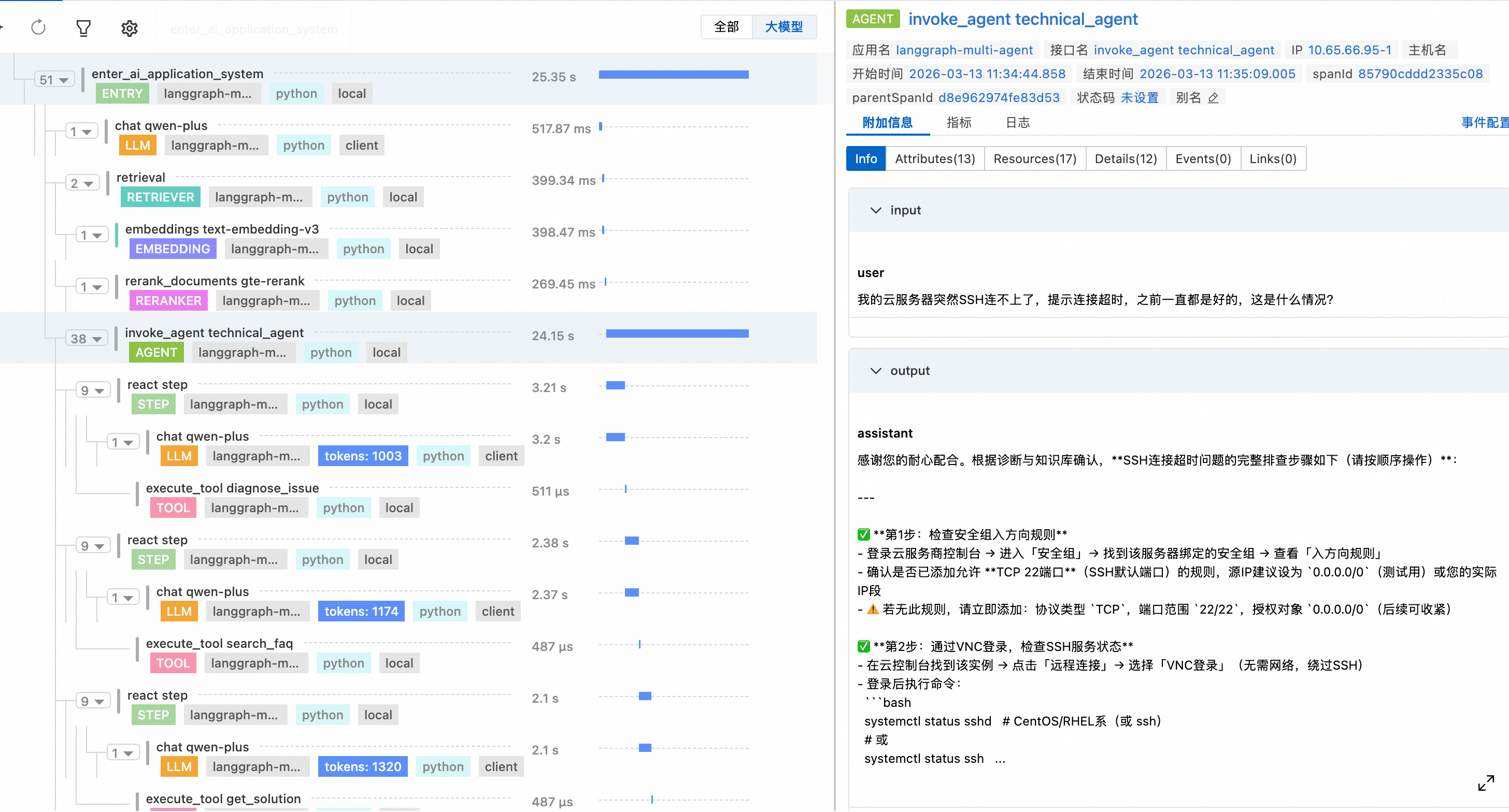 - 完整的调用链:各类大模型调用与常规微服务调用,一目了然